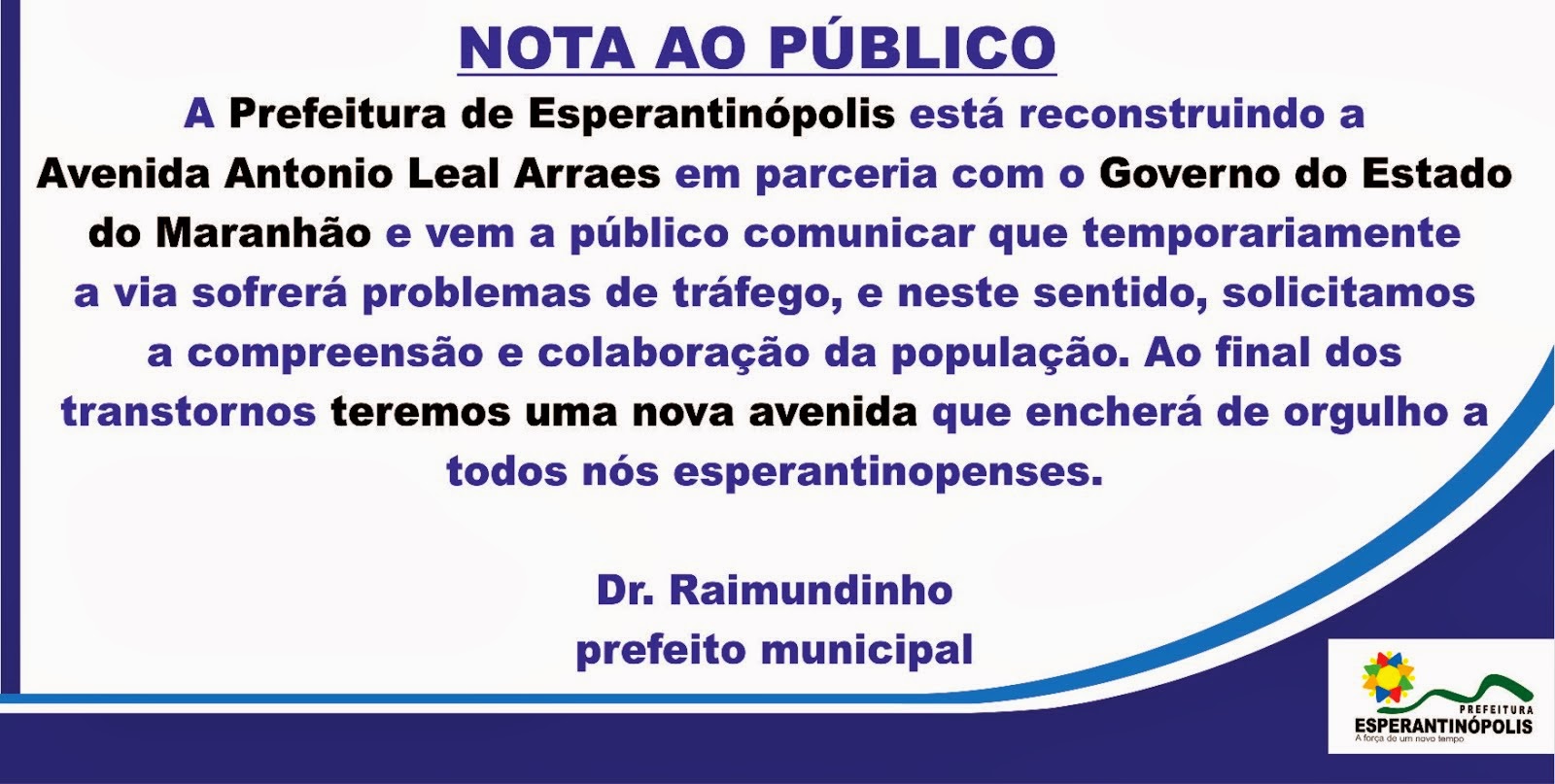 mais uma vez à disposição de Esperantinópolis. “Temos compromissos com o